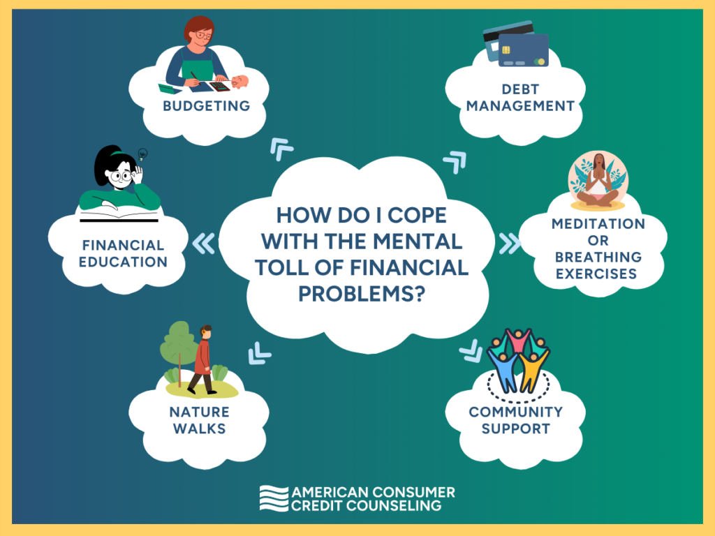 Coping with the mental toll of financial problems involves a mix of financial strategies (like budgeting and debt management) and emotional tools (such as meditation, community support, and physical activity). Seeking professional help both financial and mental can make a significant difference.